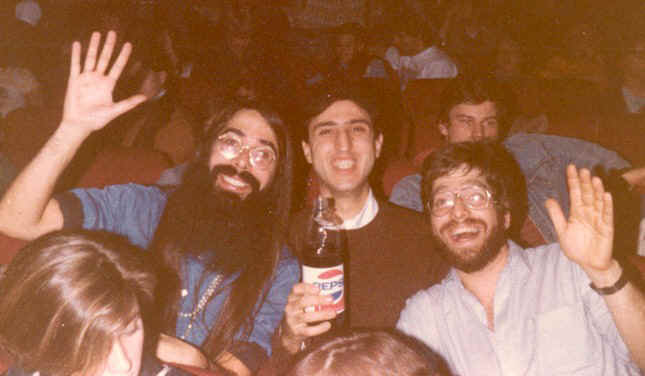 December 12, 1983 Jerry at the Beacon Theatre Marc, Peter H., Peter G. Peter H. stole that bottle of Pepsi. That's "stole" as in "took without paying." Photo: Marc Posner, DC Dead Archives |